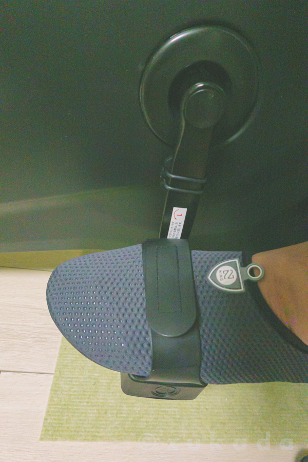 FITBOX LITE に付属するペダルはフラットな形状で、裸足でも問題ないようなものになっています。 ただ、裸足や靴下をはいた状態だと、足の裏がつりそうになることが何度かあったので、シューズを履くことにしました。